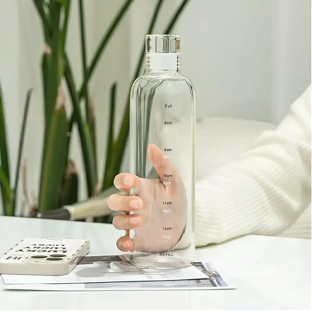 طراحی بدنه مینیمال و شفاف آن، ظاهری شبیه به بطری پیرکس ایکیا دارد و حس تمیزی و نظم را روی میز یا داخل کیف شما به‌وجود می‌آورد. درپوش محکم از جنس مواد غذایی بی‌خطر (PP) مانع نشتی می‌شود و شست‌وشوی آن بسیار آسان است.