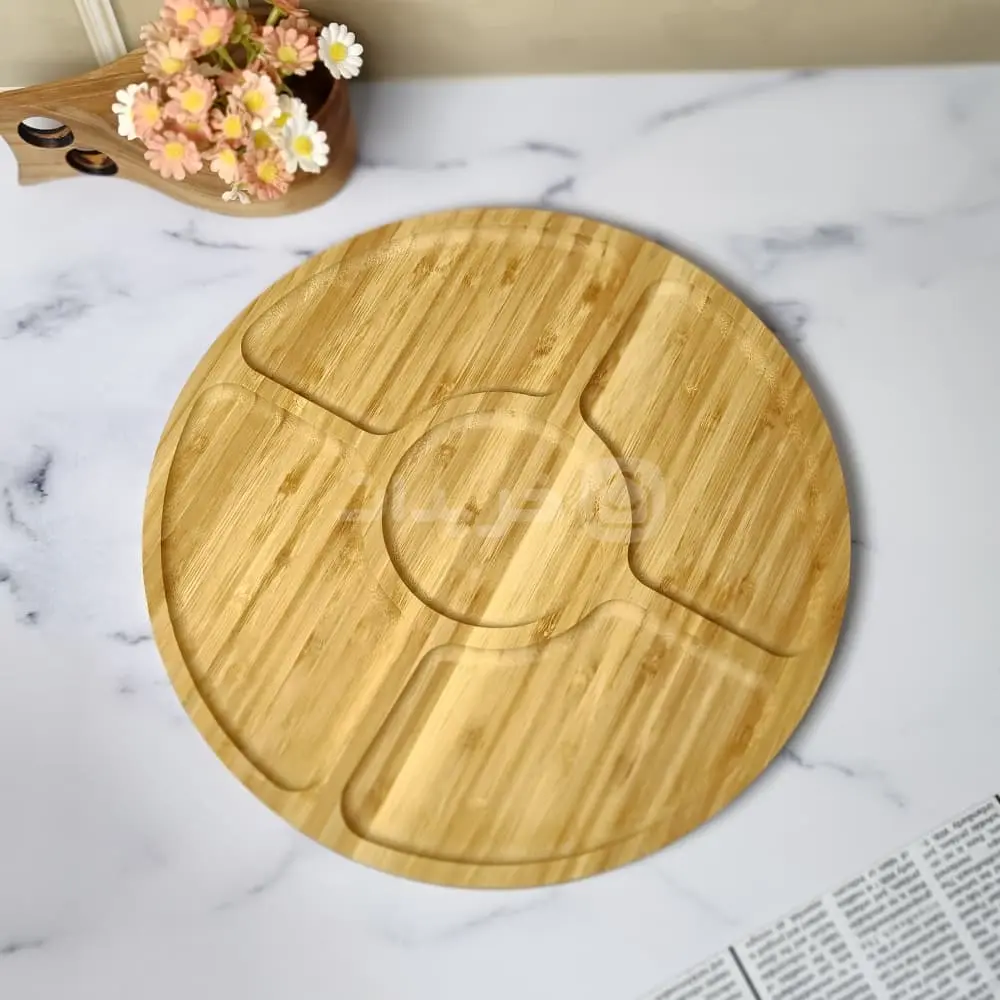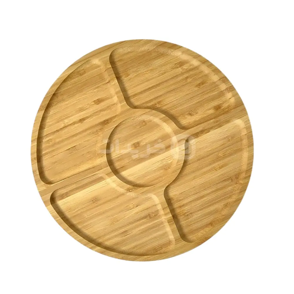 سینی سرو بامبو مدل گرد پنجخانه قطر ۳۰ سانتیمتر | شیک، کاربردی و دوستدار طبیعت